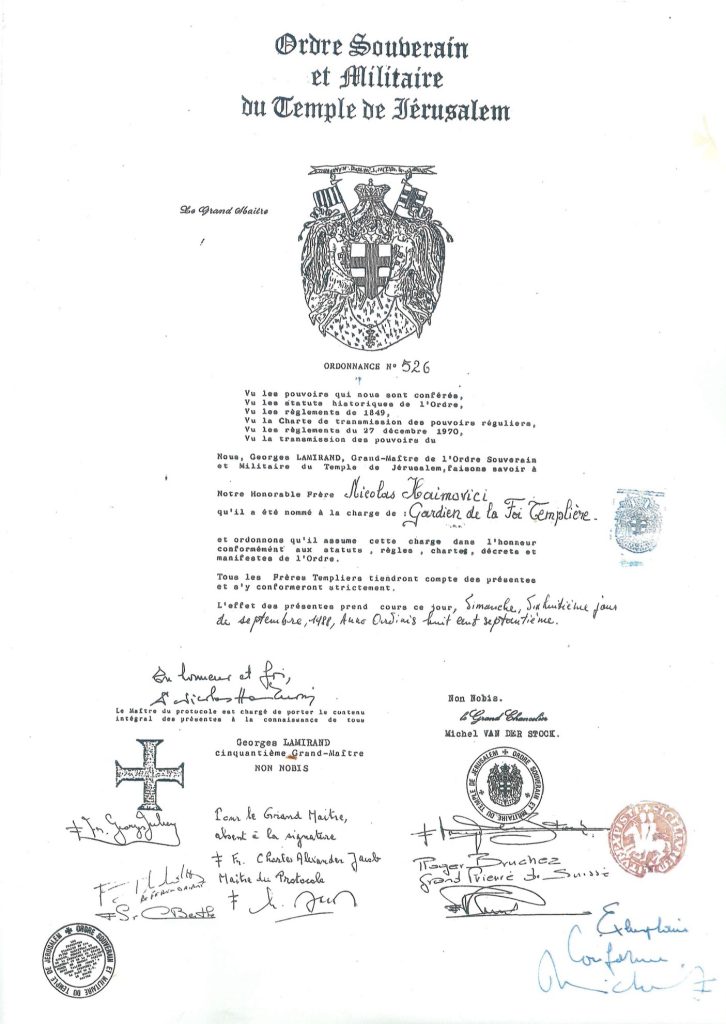 1988, Nicolas Haimovici Hastier named Guardian of the Templar Faith.